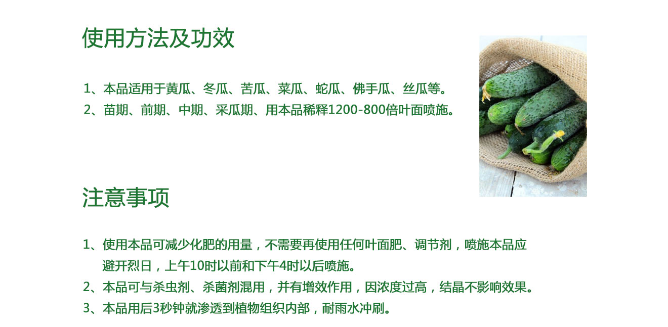 1、本品适用于黄瓜、冬瓜、苦瓜、菜瓜、蛇瓜、佛手瓜、丝瓜等。