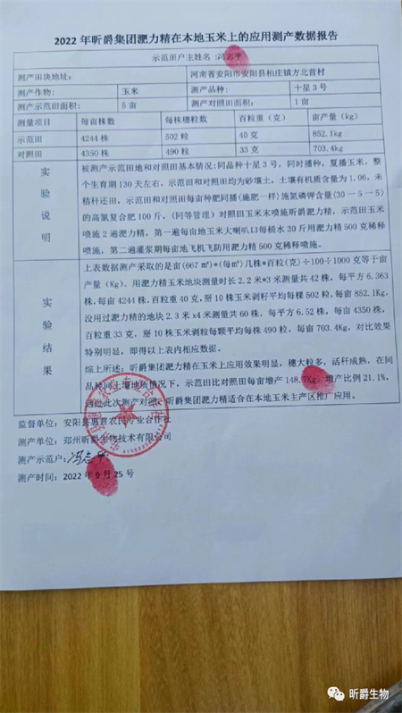 2022年9月25日,叶面肥厂家昕爵安阳技术团队在安阳市柏庄镇针对当地玉米进行,亩株数,每株穗粒数,百粒重,亩产量,开展测产作业,当地种子品种:十星3号,同时播种,土壤为沙土壤,整个生长期为130天。
