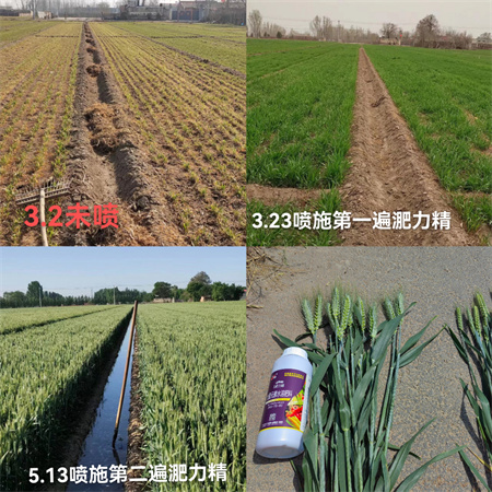 液态复合肥淝力精可以提高小麦叶片中光合作用相关酶的***,提升光合效率;同时还能促进麦苗根系生长与对营养的吸收,从而促进麦苗生长,提苗壮苗,提前返青。在小麦返青期使用淝力精叶面肥喷施,可预防倒春寒,促进小麦快速返青,加快叶片由黄转绿速度!