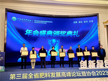 河南省肥料协会第四次会员大会邀请昕爵集团执行总裁宋阳先生向大家分享了他们企业的发展历程和成功经验,并向昕爵集团代表颁发了“2023年年大量元素水溶肥产品质量优 秀奖”等奖项。
