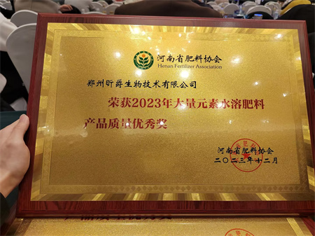 近日,从河南省肥料协会传来喜讯,昕爵集团当选为常务理事单位以及荣获“2023年大量元素水溶肥产品质量优 秀奖”和“2023年微生物菌剂产品质量优 秀奖”。