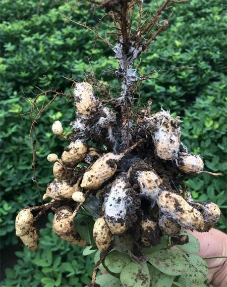 花生白绢病是一种土传病害,主要依靠土壤带菌侵染传播,也可以通过种子带菌传播。从2011年开始,在花生主产区的河南、山东,花生白绢病的发生逐年加重,尤其是到2018年、2019年,更是达到极其严重的发生程度,致使花生严重减产。由于其发病后防治难度大、对花生危害严重,被广大农户和农资经销商喻为“花生癌症”。