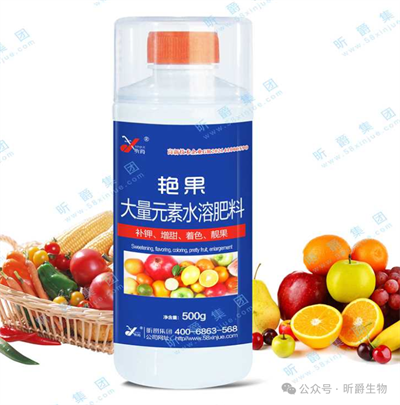 如何实现果大、色正、味好?推荐使用昕爵生产的大量元素水溶肥艳果,增甜、增香、着色、靓果、膨大,提高糖分、促进着色催红不催熟,防止裂果、减少落果、抵御日灼。