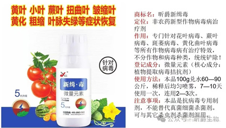 对于病毒病的防治,谨记一个原则:预防为主,综合防治!给大家介绍一款水溶肥厂家昕爵集团针对农作物病毒病生产的新缉▪毒,专治各种顽固性病毒,真对多种作物黄叶病毒,花叶病毒,蕨叶病毒,黄化曲叶病毒等,其余病毒药搞定不了的就找新缉▪毒一次治愈!!!