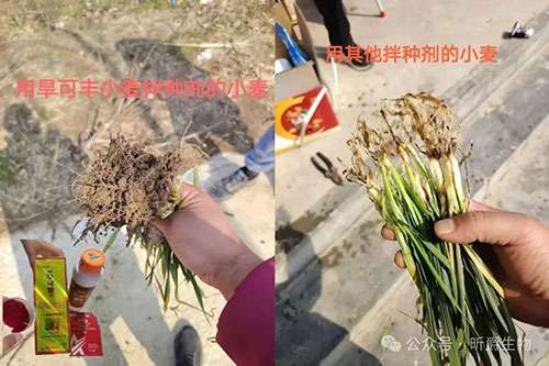 小麦要产量提高,拌种是关键,为什么旱可丰小麦拌种剂能够在市场上经久不衰,能够得到新老客户的认可,现在已经发展到第六代了,它究竟有什么特别之处呢?在今年晚播的情况下出苗情况如何呢?让我们一起来看看2025年旱可丰小麦拌种剂的市场反馈。